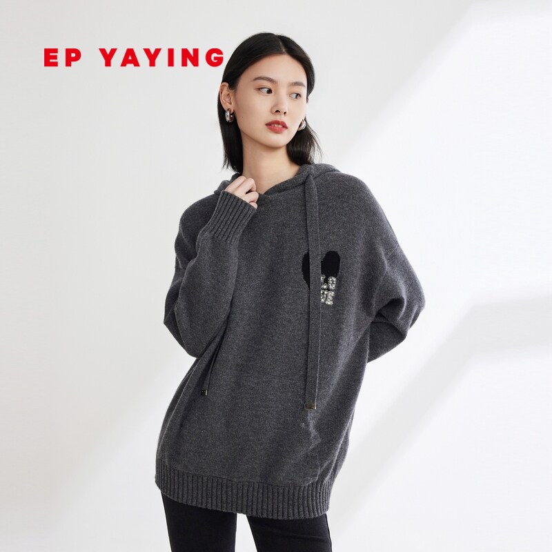 EP雅莹女装 牦牛绒羊毛混纺连帽提花针织衫 2023秋冬新款9533A