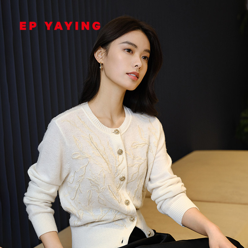EP YAYING雅莹女装 羊毛羊绒混纺提花针织开衫 2024早春新品9156A