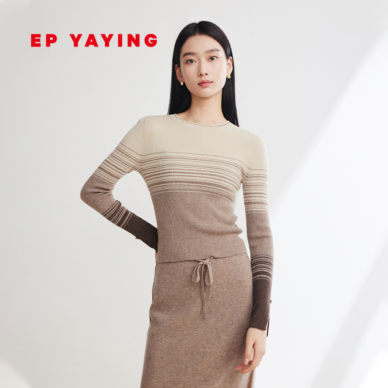 EP YAYING雅莹女装 牦牛绒条纹渐变圆领针织衫 2023秋冬新款9910A