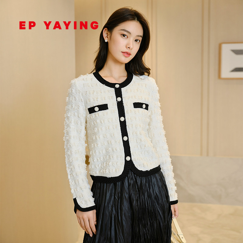 EP YAYING雅莹女装 小香风剪毛肌理感针织开衫 2024早春新品9118A