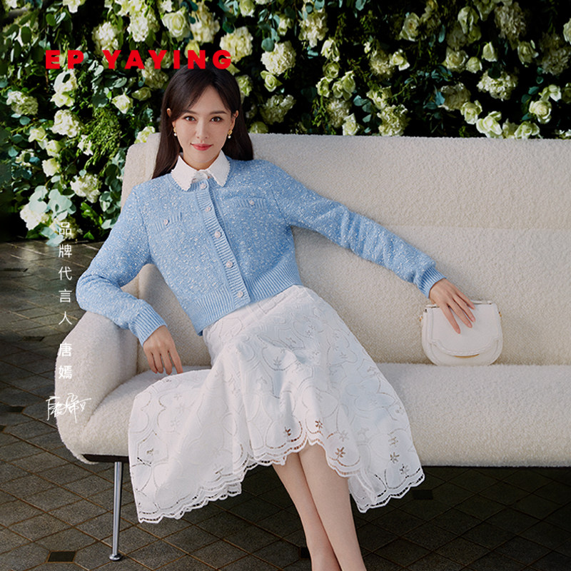 EP YAYING雅莹女装 羊毛羊绒小香风花卉针织衫 2024早春新品9169A