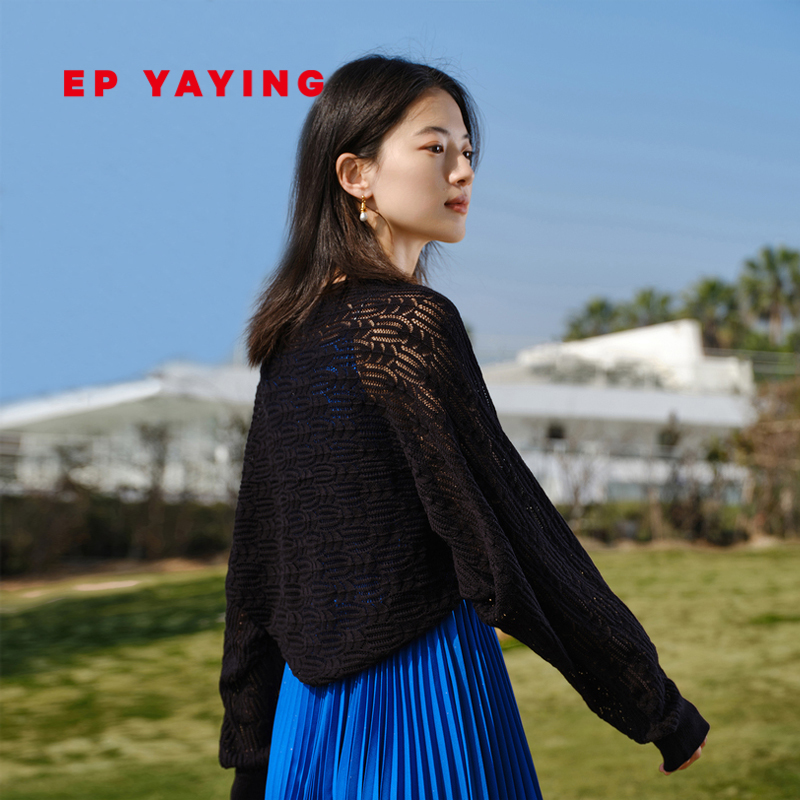 EP YAYING雅莹女装 纯色修身圆领镂空针织衫 2023早秋新款9909A