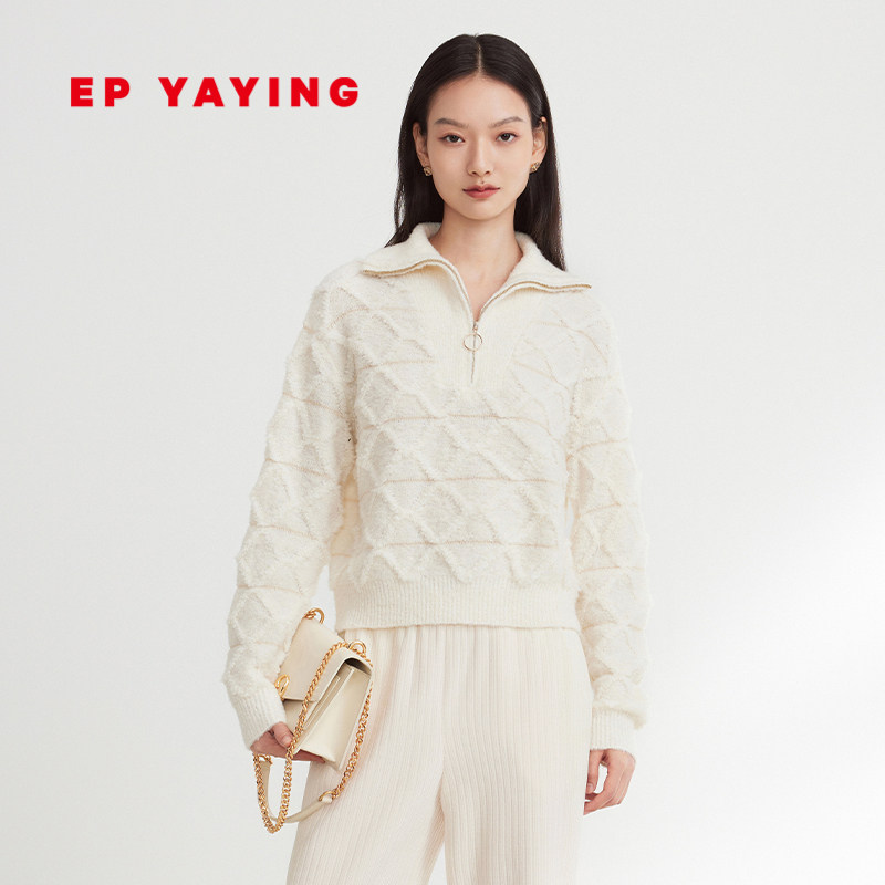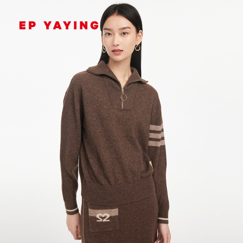 EP YAYING雅莹女装 羊毛羊绒拉链翻领针织衫 2023秋冬新款9506A