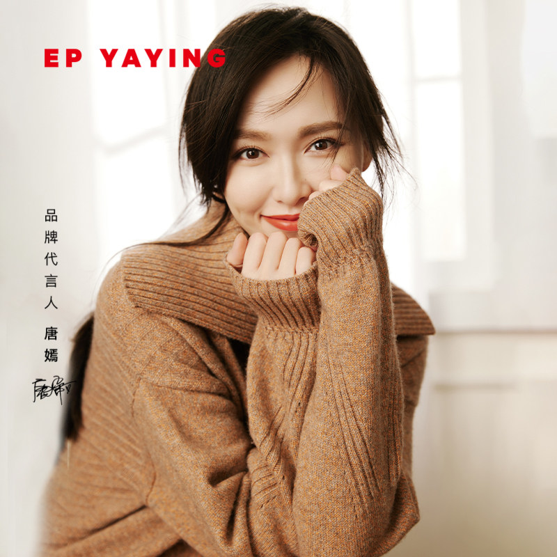 [唐嫣同款]EP雅莹女装 羊毛纯色高领针织衫 2023秋冬新款9918A