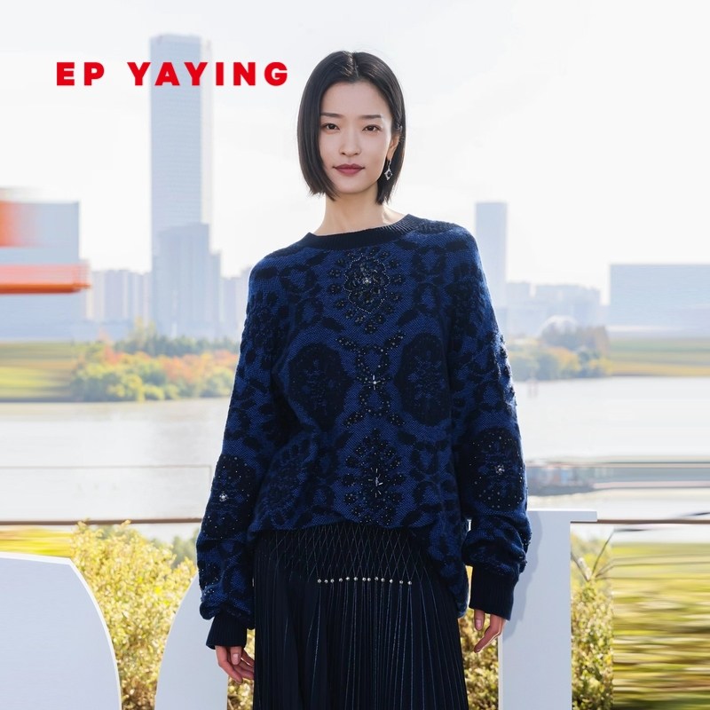 [唐嫣同款]EP雅莹女装 国风提花马海毛套头针织衫 2023秋冬9512A