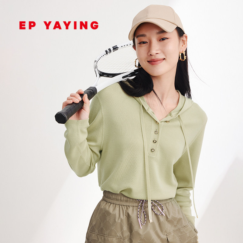 EP雅莹国风 纯羊毛粉色多巴胺连帽套头针织衫 2024早春新品9529A