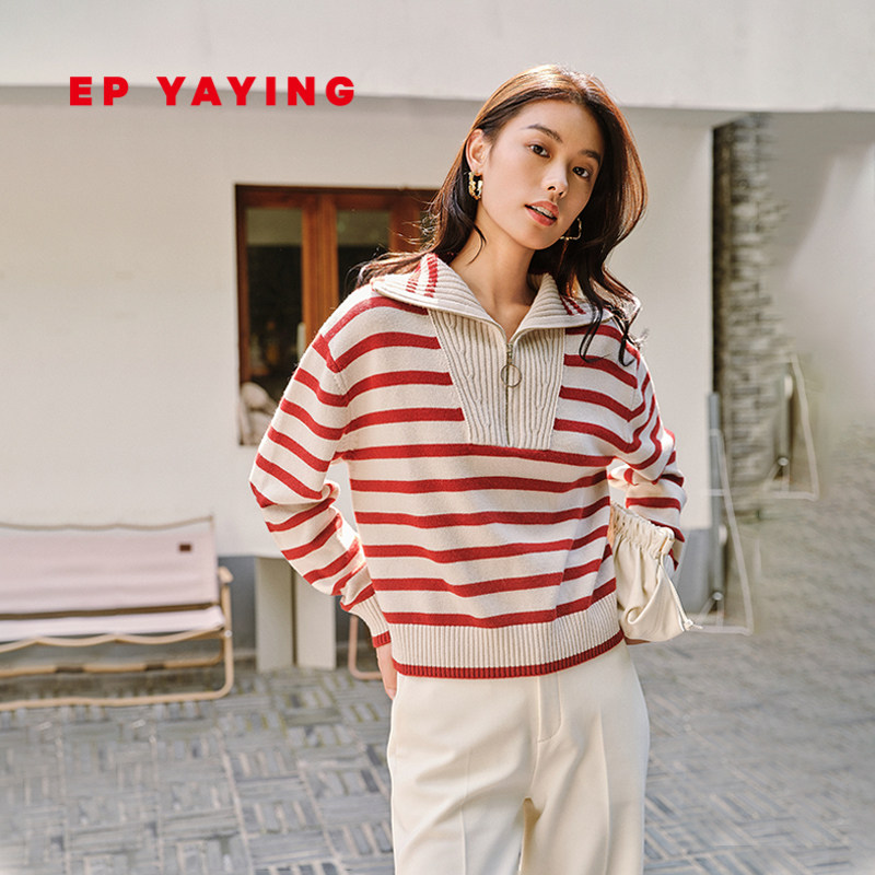 [唐嫣同款]EP雅莹女装 美利奴羊毛条纹针织海魂衫 2023秋冬9529A