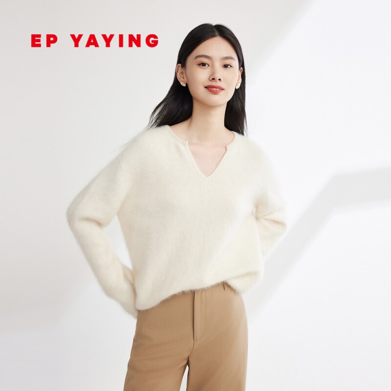 EP雅莹女装 牦牛绒绵羊毛混纺圆领宽松针织衫 2023秋冬新款9580A