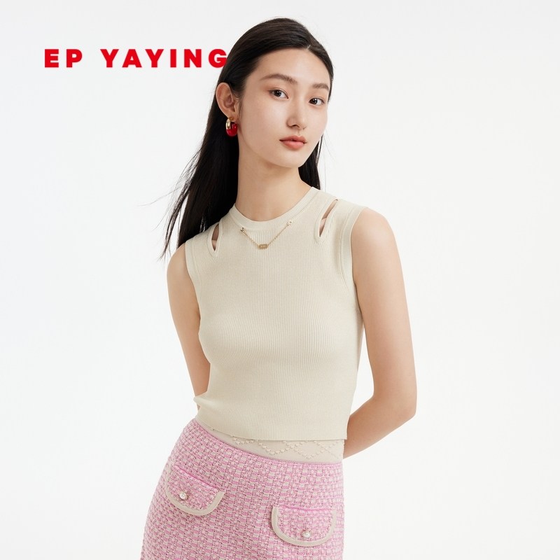 EP雅莹女装 气质修身无袖镂空冰丝针织衫 2023新款9027A