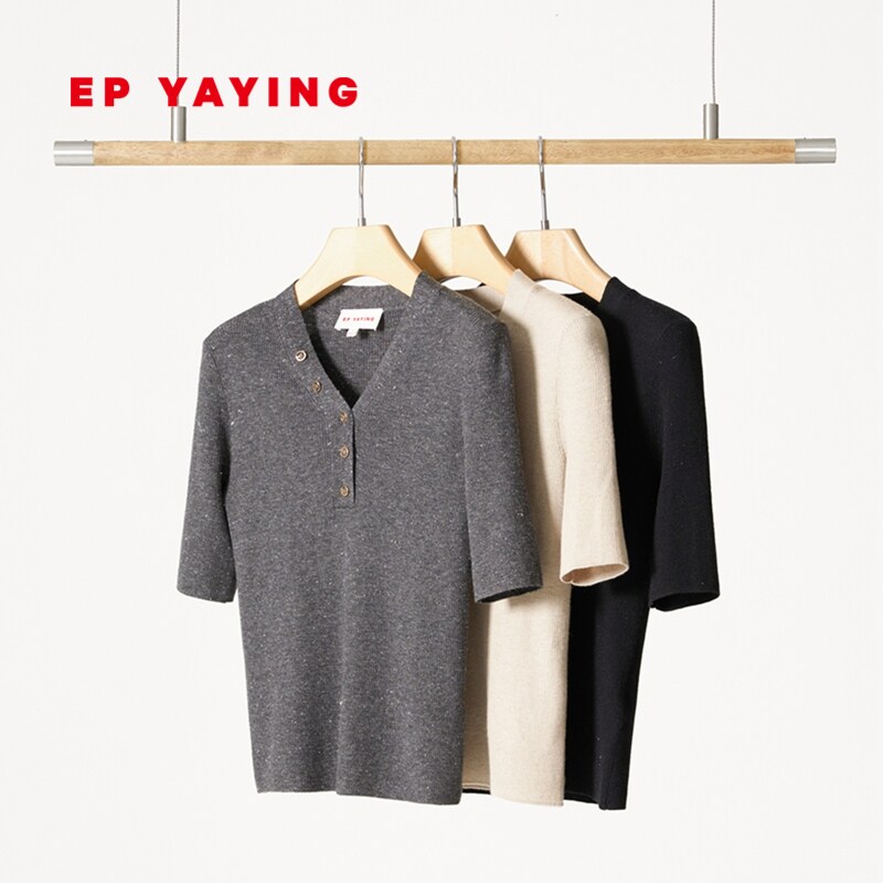EP YAYING雅莹女装 绵羊毛V领修身中袖内搭针织衫 商场同款9905A