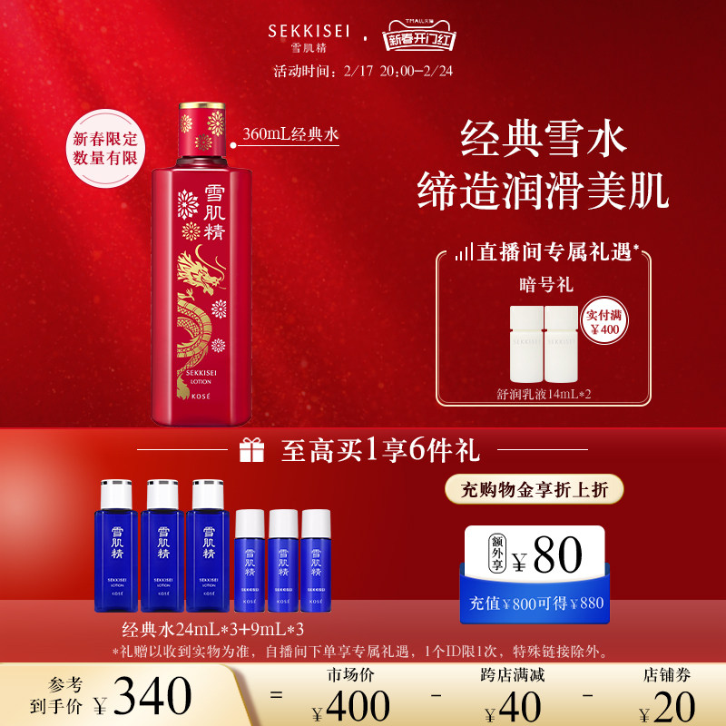 【自播专享】雪肌精化妆水保湿滋润爽肤水经典雪水正品