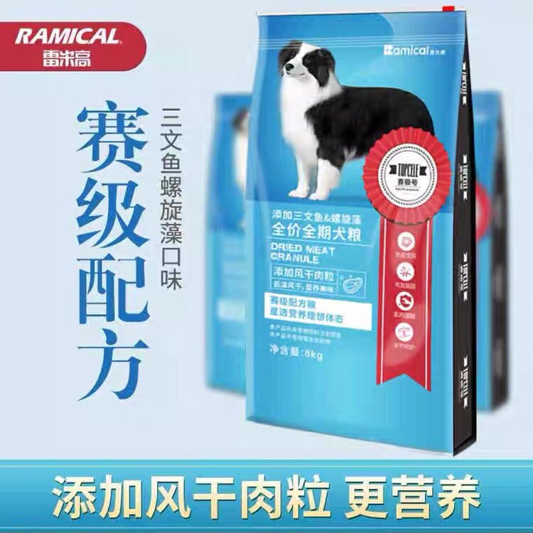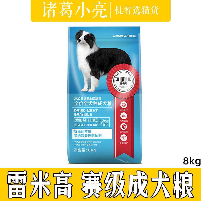 雷米高赛级号犬粮三文鱼螺旋藻全价成犬狗粮8KG全犬种赛级送1.5KG