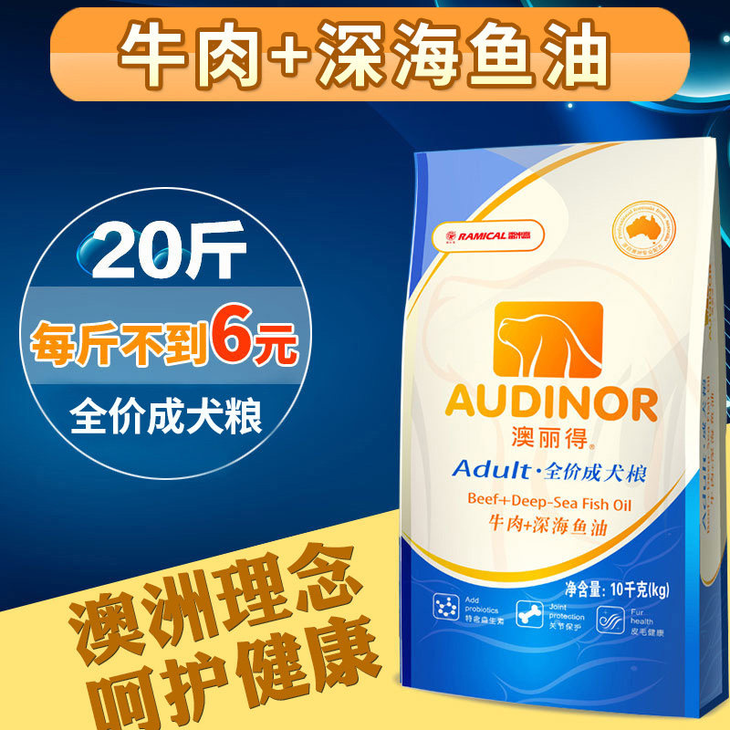 狗粮40斤雷米高澳丽得牛肉深海鱼油成犬幼全犬通用20kg2.500 10kg