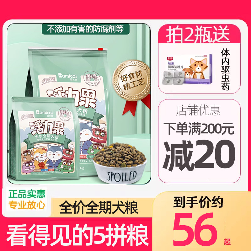 雷米高活力果狗粮全价全期犬粮肉蛋果蔬五拼主粮正品大袋成犬冻干