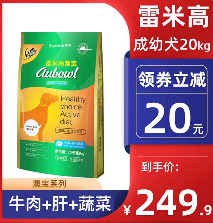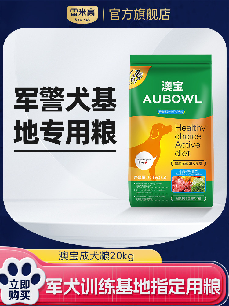 雷米高澳宝狗粮10kg边牧金毛哈士奇泰迪比熊拉布拉多成犬粮20斤装