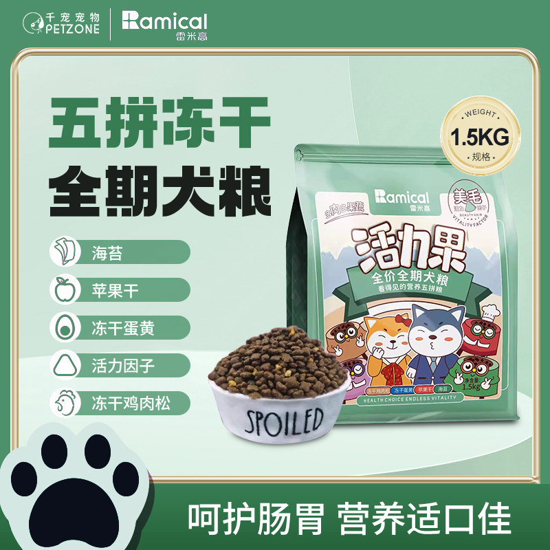 雷米高活力果全价全期犬粮泰迪比熊通用型成幼犬5拼冻干狗粮1.5kg