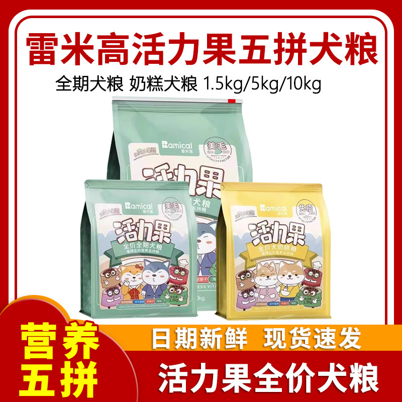 雷米高活力果狗粮奶糕全价果蔬冻干五拼美毛增免疫增肥大包装10kg