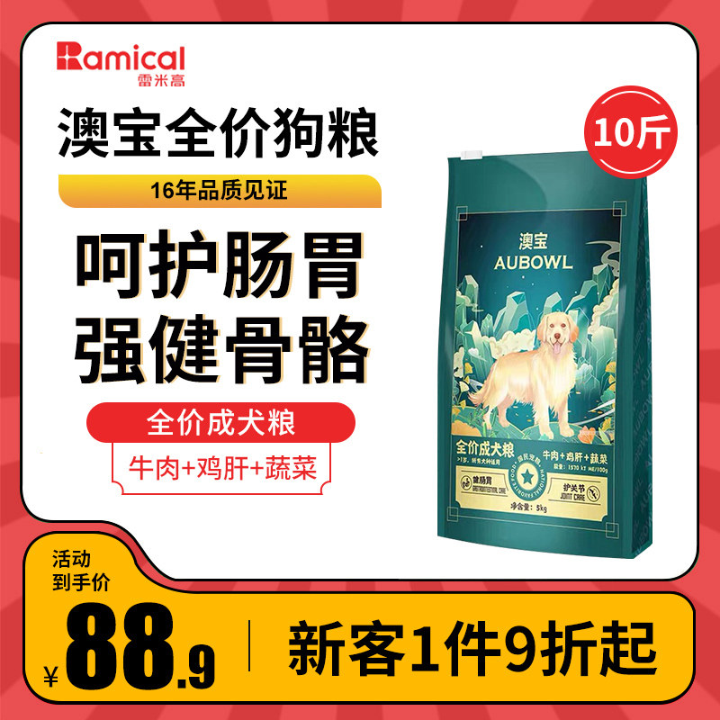 雷米高狗粮澳宝5kg巴哥金毛泰迪比熊大中小型犬10斤装成犬通用型