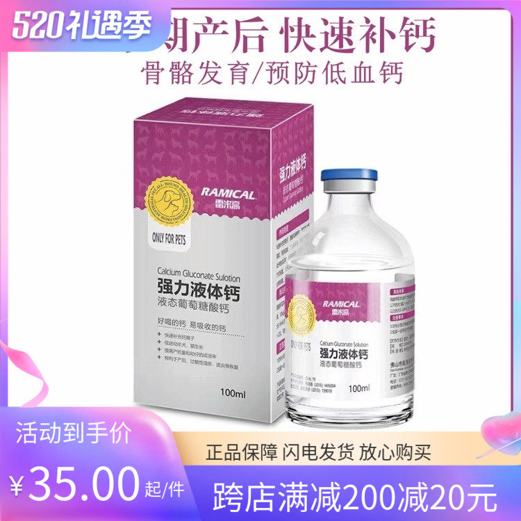 雷米高液体钙猫咪狗狗通用金毛钙片补钙怀孕幼猫幼犬成长发育骨折