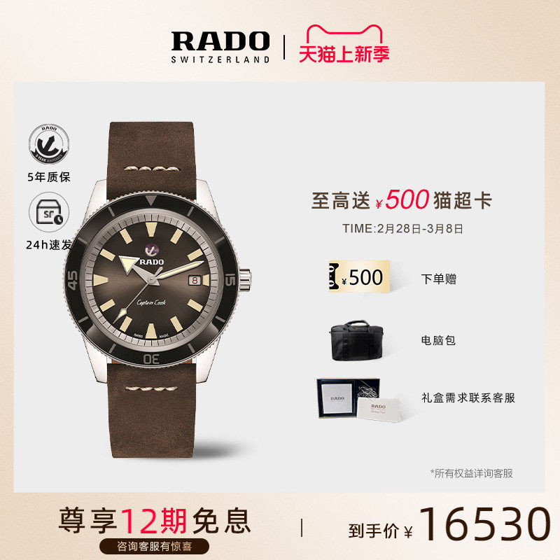 Rado瑞士雷达表库克船长系列寰宇库克限量款机械手表女赠表带