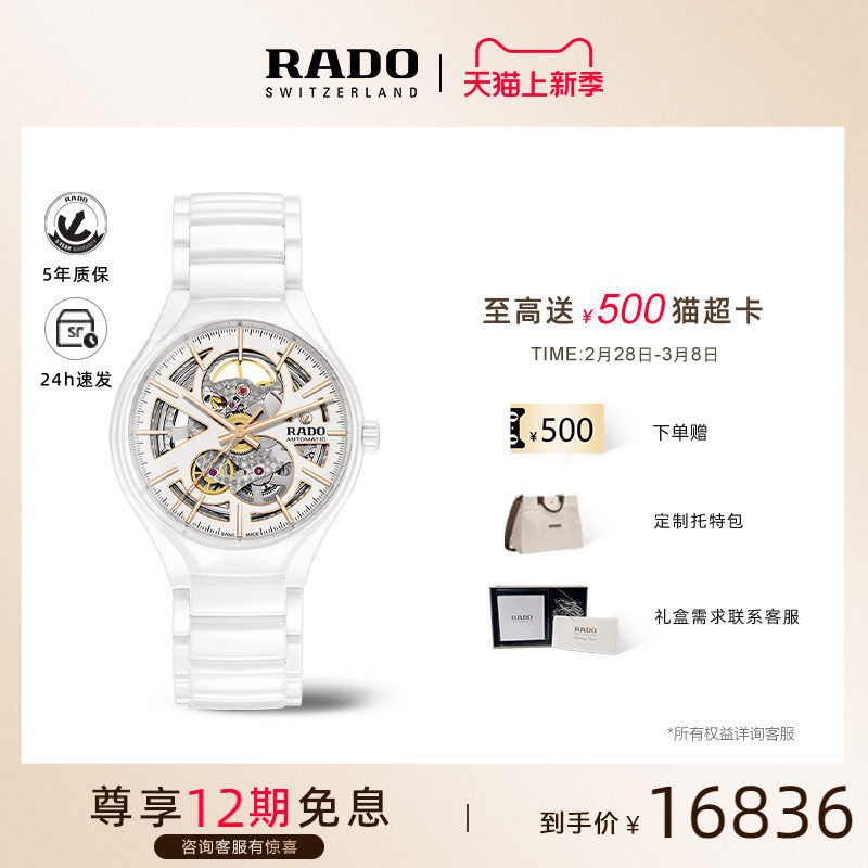 金晨同款Rado瑞士雷达表真系列芯动白镂空自动机械表陶瓷手表女