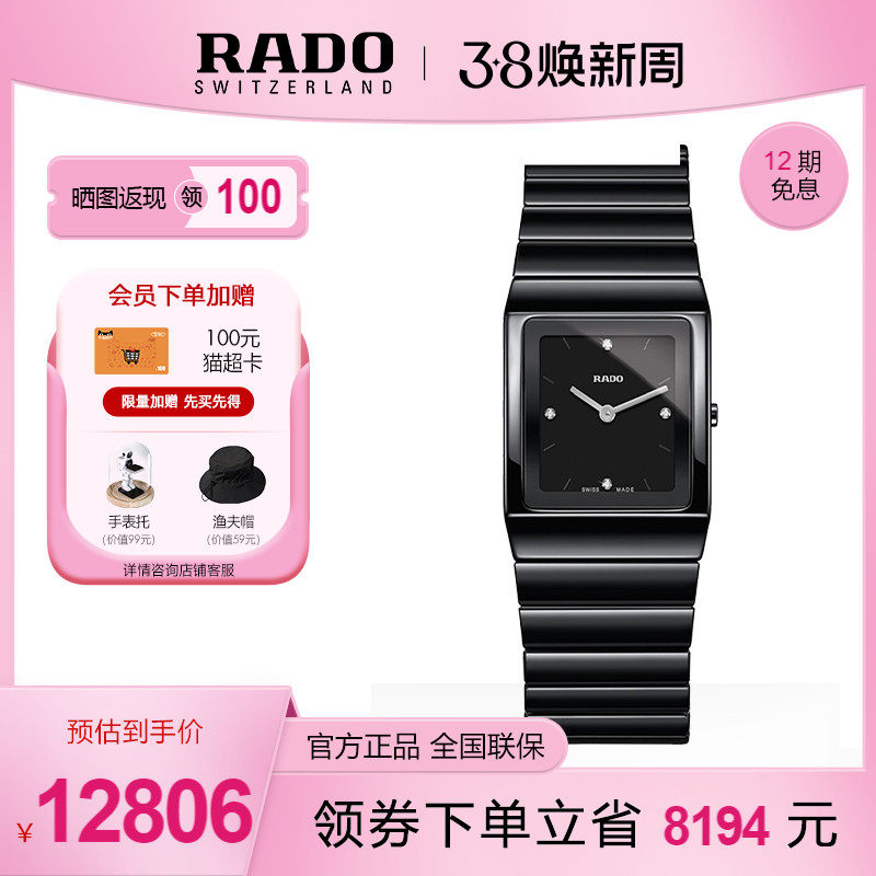 Rado瑞士雷达表真我系列钻方机械表镶钻方形表陶瓷手表男