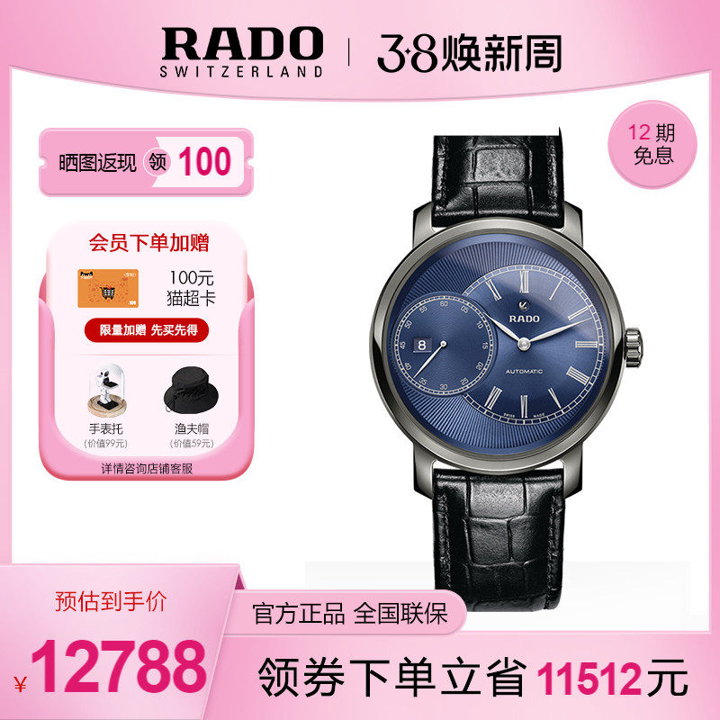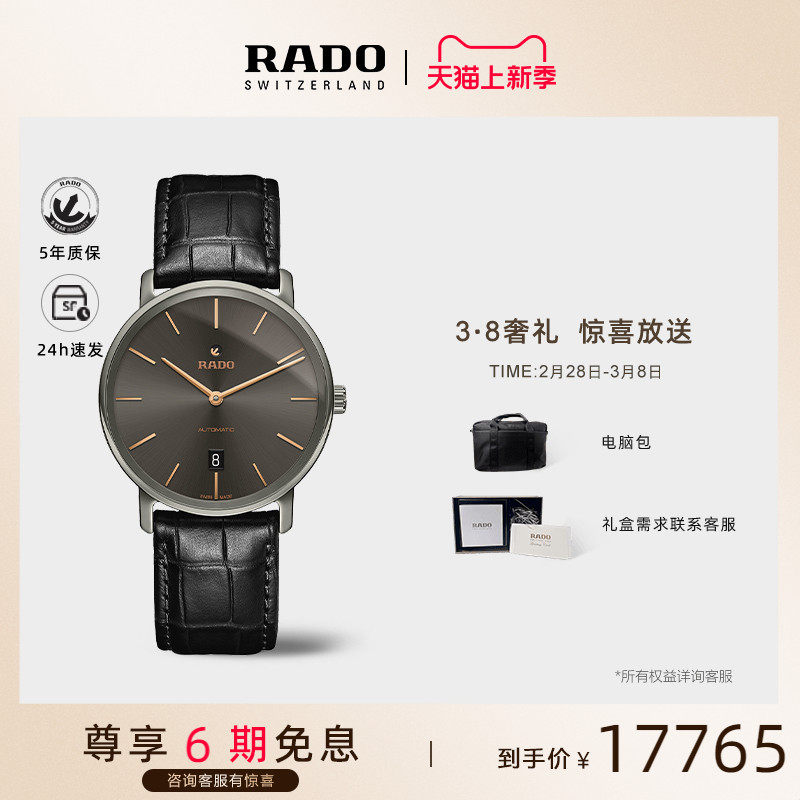 Rado瑞士雷达表晶璨系列皮表带手表男机械手表腕表