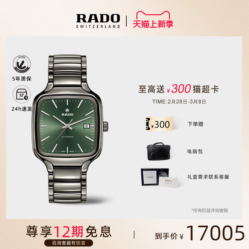 Rado瑞士雷达表真我系列方形表陶瓷绿盘机械手表男
