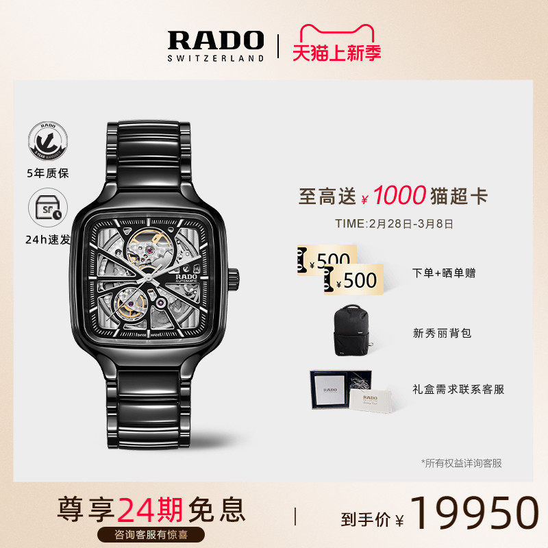 Rado瑞士雷达表真我系列机械方形表镶钻镂空陶瓷手表男