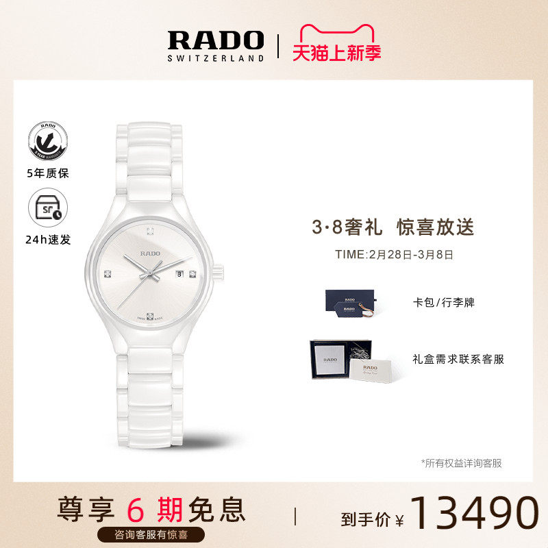 Rado瑞士雷达表真系列镶钻陶瓷腕表小表盘石英手表女