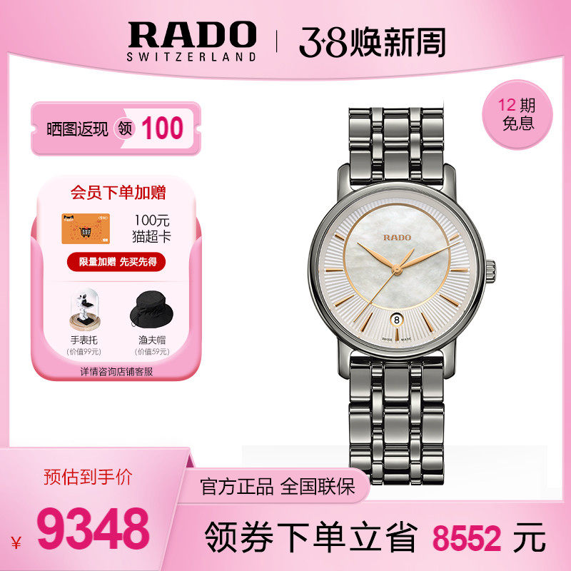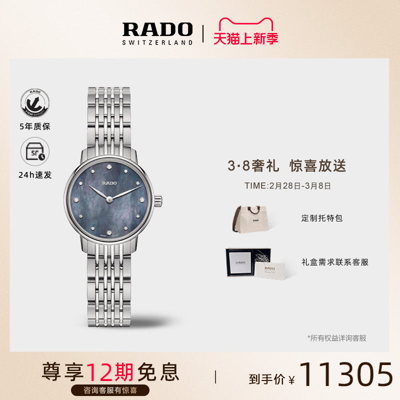 Rado瑞士雷达表晶璨系列镶钻手表女母贝盘石英精钢表