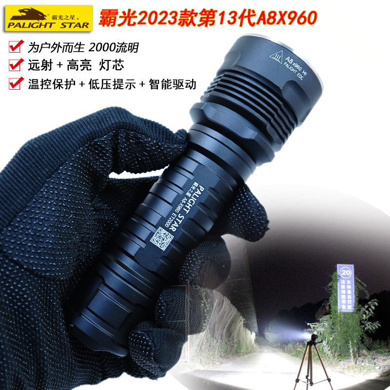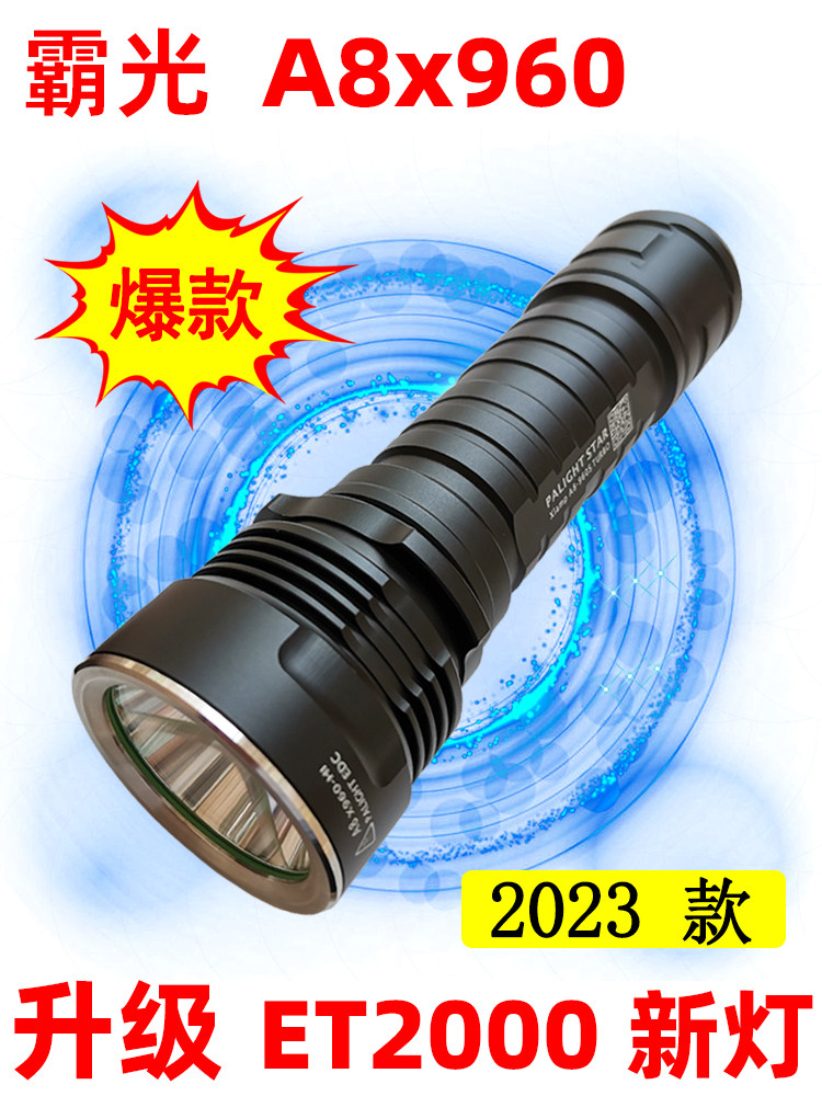 .厂家正品霸光手电筒A8-X960第2023款26650强光手电筒黄光充电灯