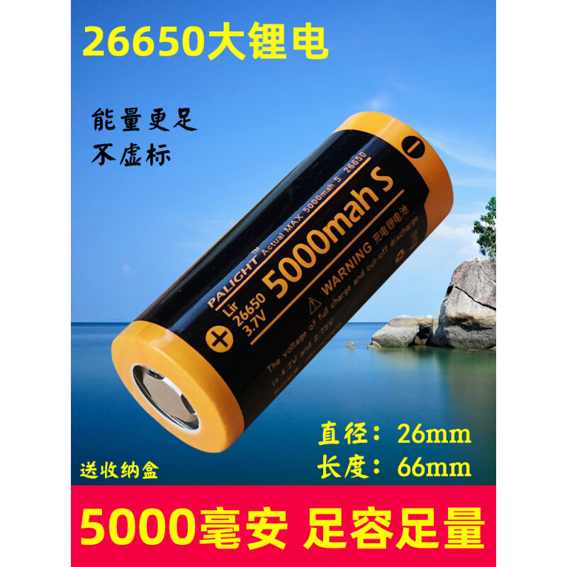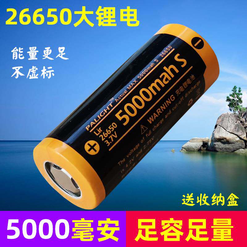 霸光260650锂电池强电筒3.7手V大容量光平头动力500毫安充电26650