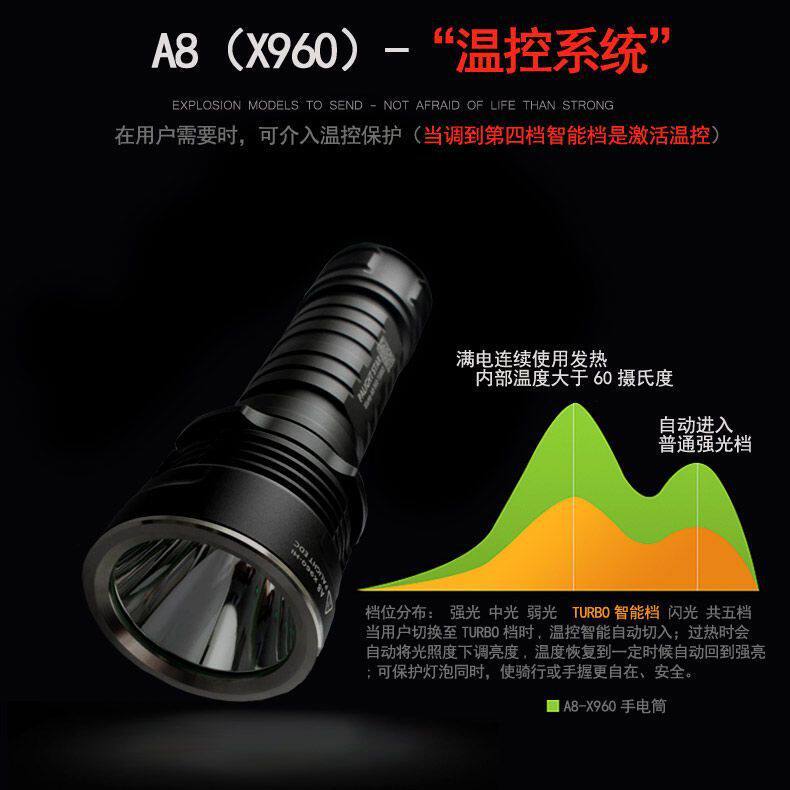 霸光A8X960强光手电筒26650电池可充电超亮远射探照防水家用夜骑