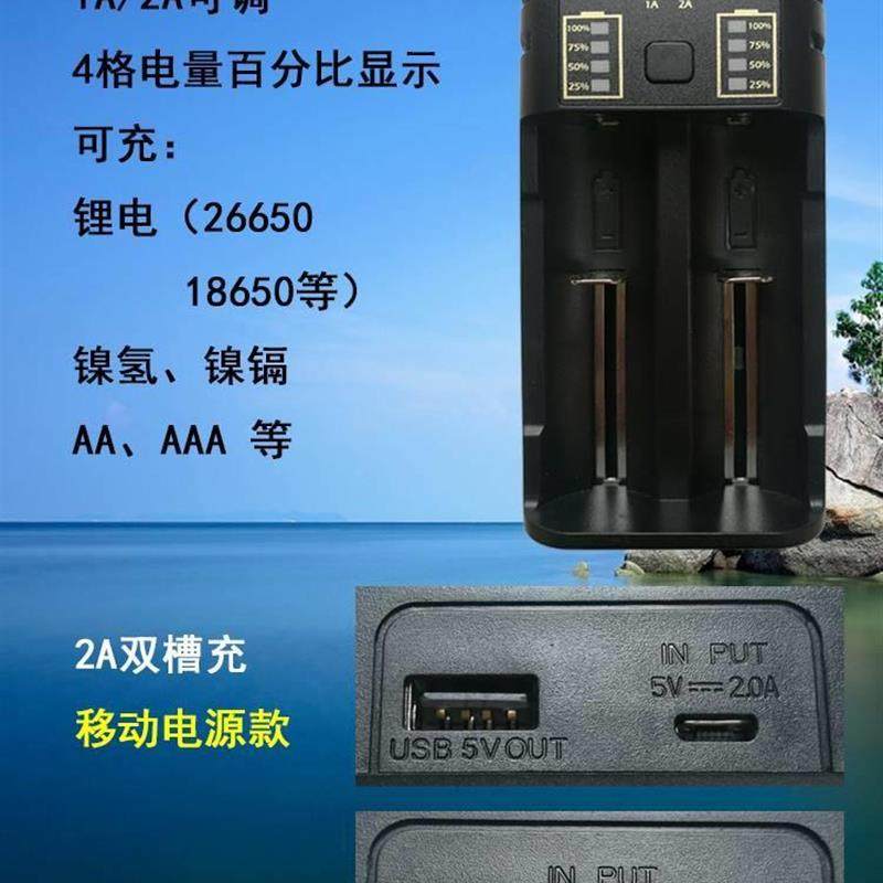 霸光26650电池充电器 3.7v多功能USB双槽强光手电筒18650座充4.2v