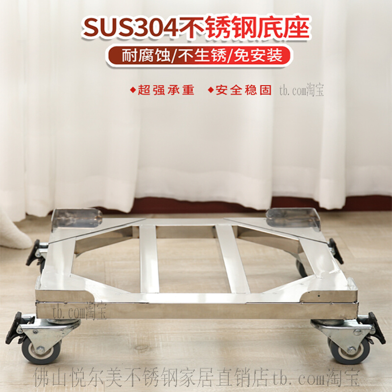 304不锈钢洗衣机底座可移动万向轮架子带轮冰箱托架制冰机置物架