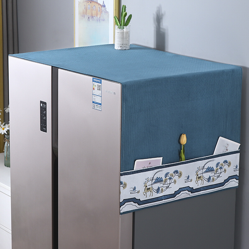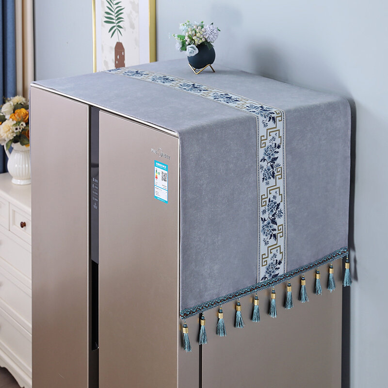 新中式冰箱防尘盖布高档盖巾双开门防尘罩家用茶台防滑床头柜桌旗
