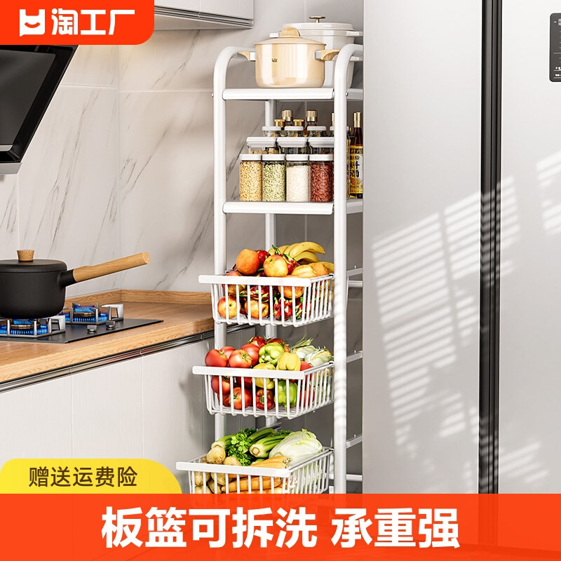 厨房夹缝置物架落地多层窄蔬收纳架20CM宽抽屉式冰箱旁侧面缝隙