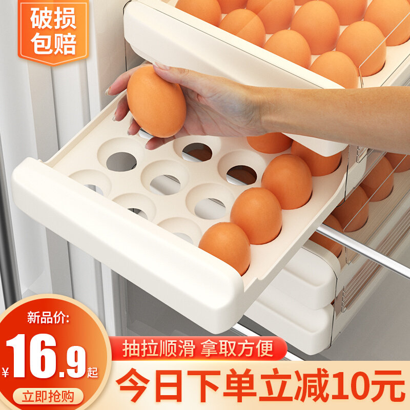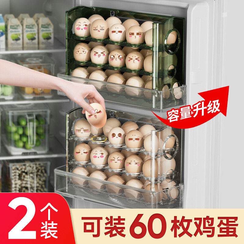 冰箱鸡蛋收纳盒抽屉式专用收纳托双层抽拉式盒子放鸡蛋保鲜大容量