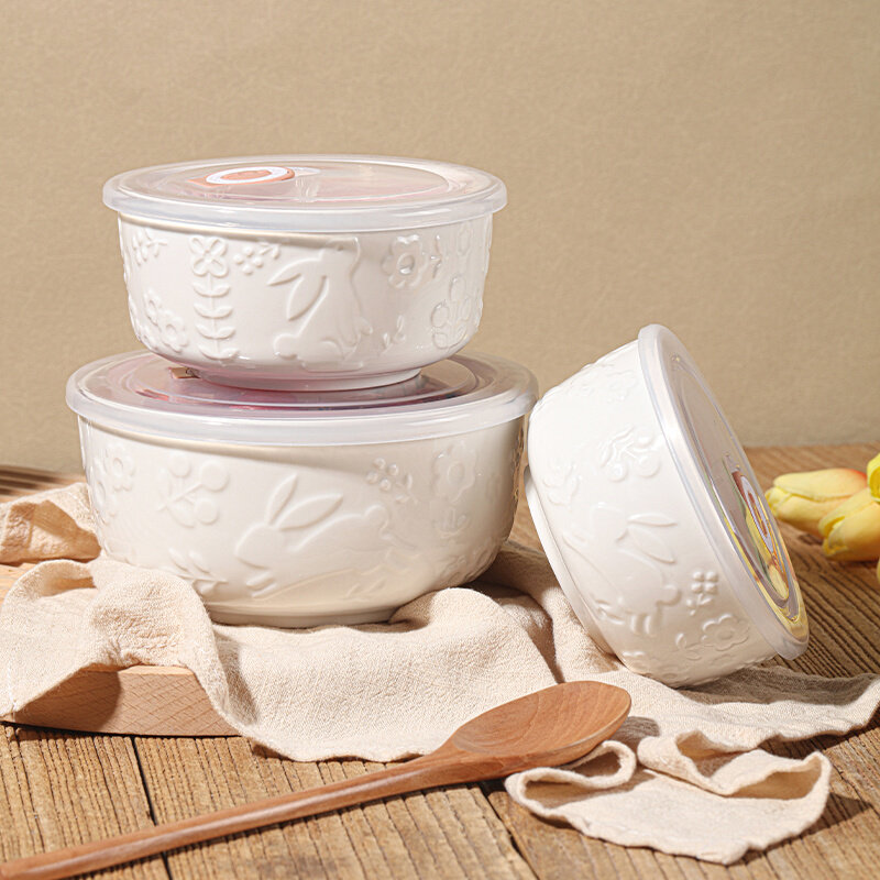 顺祥陶瓷保鲜碗带盖泡面碗上班族便当盒微波炉加热专用冰箱收纳盒