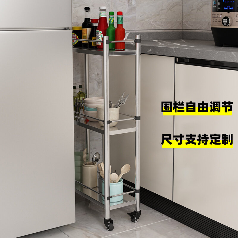 冰箱缝隙小架子15/20cm不锈钢厨房阳台储物架夹缝置物架落地多层