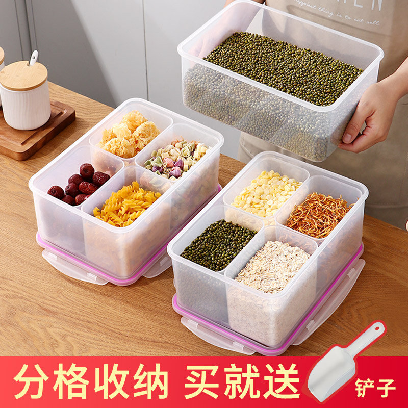 厨房五谷杂粮收纳盒葱姜蒜分格带盖四格冰箱储物盒密封食品保鲜盒