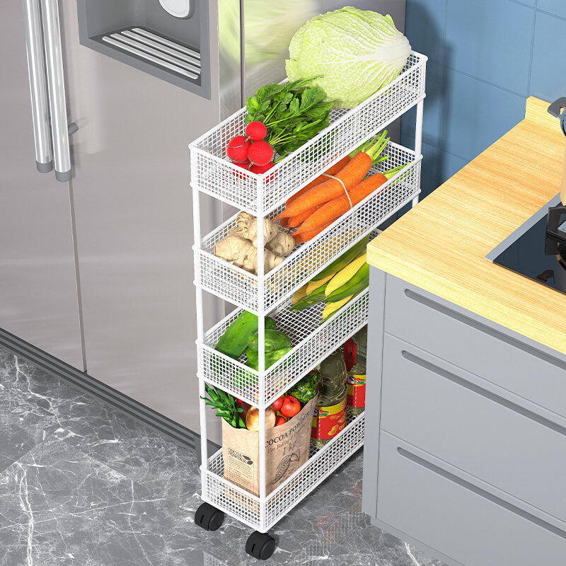 厨房夹缝置物架多层落地带轮冰箱侧储物架锅具白色微波炉收纳架子