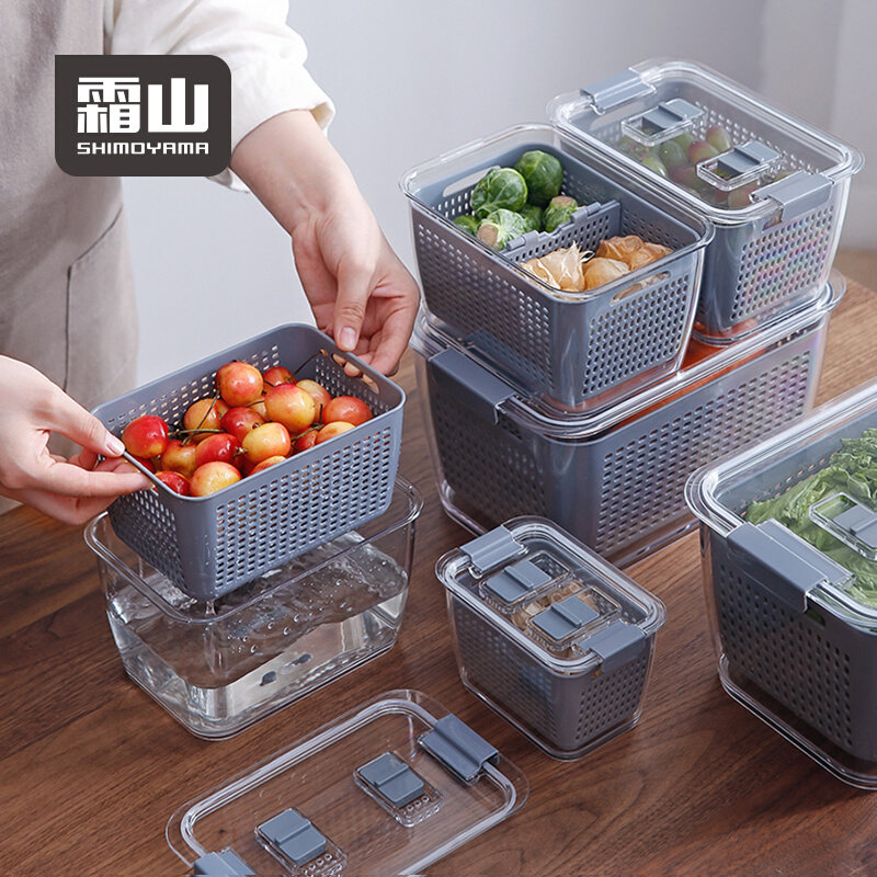霜山厨房沥水篮保鲜盒塑料带盖家用洗蔬菜水果洗菜篮冰箱收纳盒