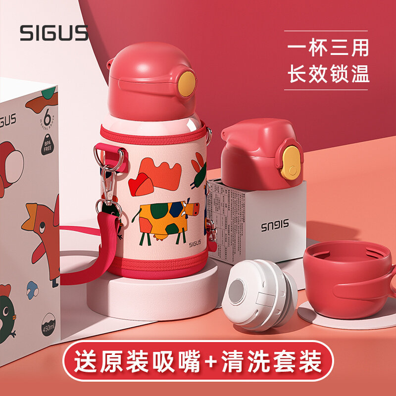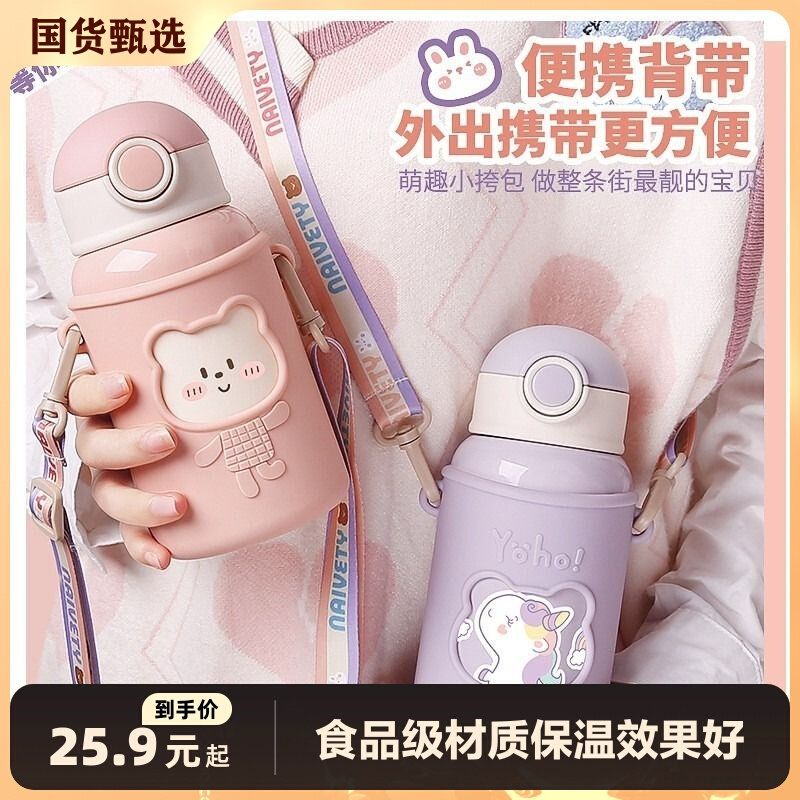 可爱保温杯女生高颜值水杯儿童上学专用316不锈钢水壶带吸管杯子