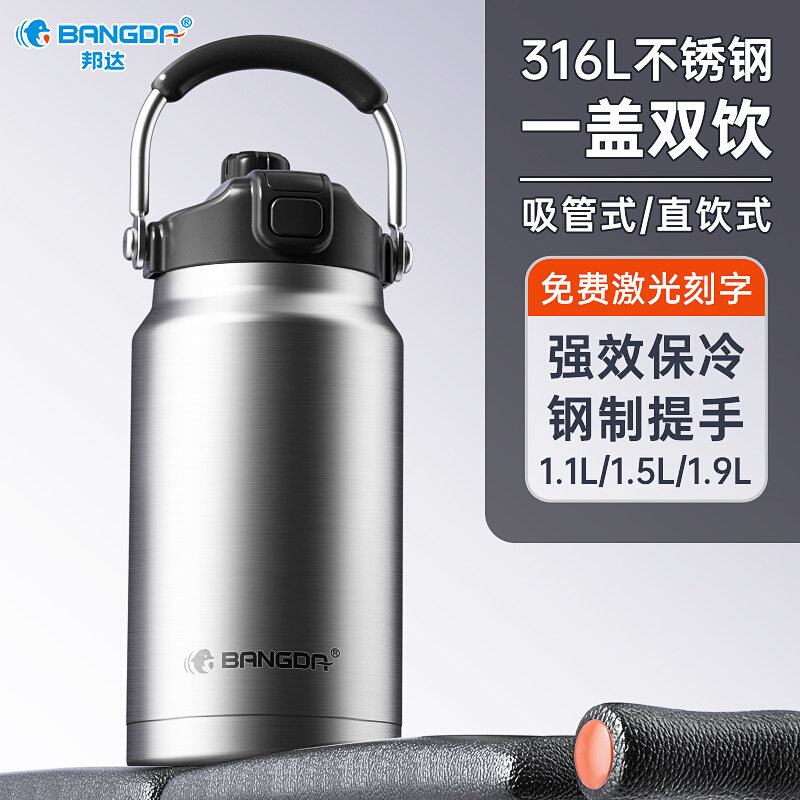 316不锈钢保温杯男款大容量水杯子吸管杯儿童学生便携运动水壶2升