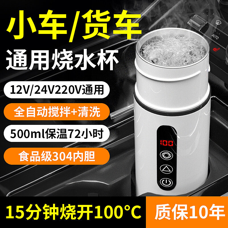新款车载烧水壶12v24v通用专用烧水杯汽车用货车电热加热保温一体