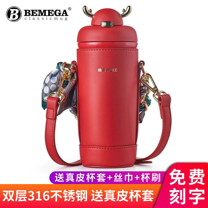 Bemega儿童保温杯男孩316食品级吸管水杯子学生上学专用便携水壶