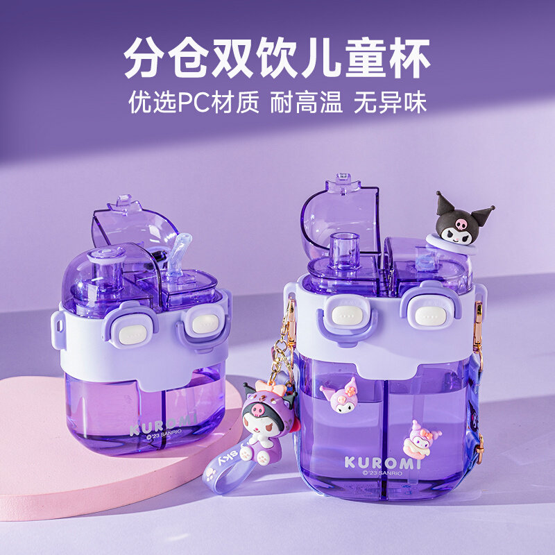三丽鸥库洛米儿童水杯新款学生上学专用分仓双饮杯子女生便捷水壶