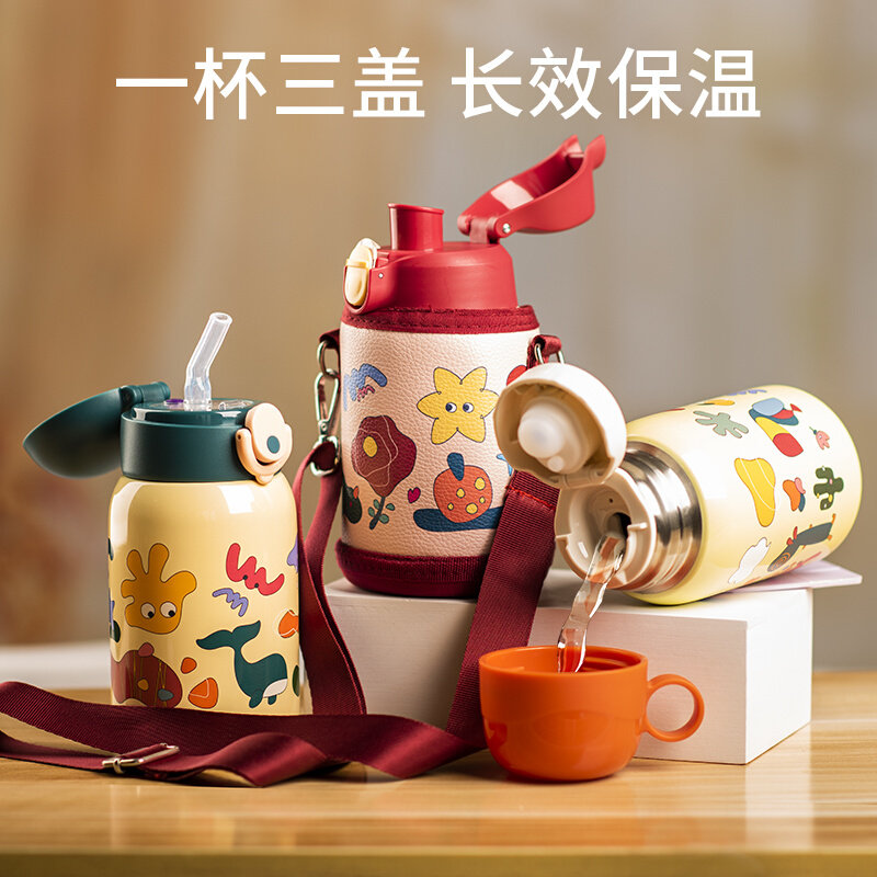 2023新款儿童保温杯男小学生316不锈钢食品级吸管水杯大容量水壶